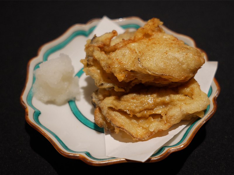 牡蠣,芹,小麦粉,ポン酢,おろし