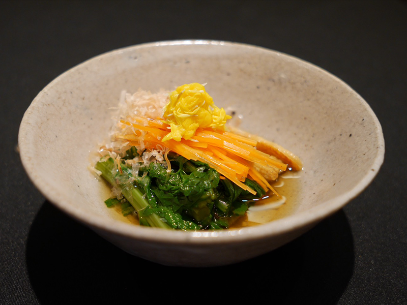 春菊 , 油揚げ , 人参,醤油 , みりん、鰹節